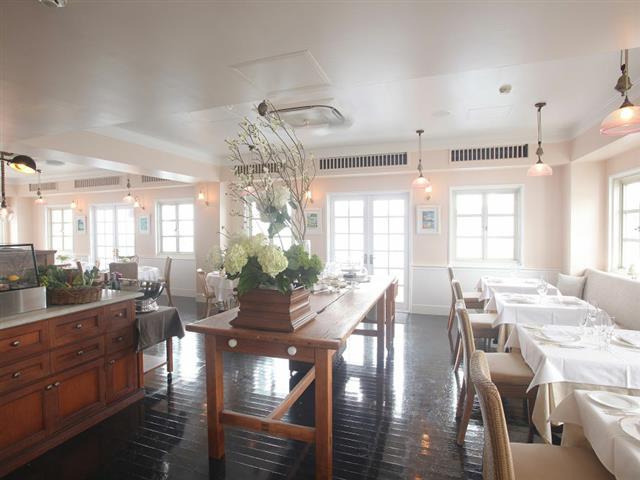 ランチは、海岸沿いに建つ真っ白な一軒家でちょっと贅沢に過ごしてみましょう。1階はカジュアルな雰囲気のカフェ・ブラッセリー、2階はフランス風創作料理をコースで楽しめるレストランになっているので、その日の気分でランチ場所をチョイス。どちらも新鮮な海の幸や葉山の野菜を使った料理を味わえます。海に面したテラス席もあるので、暖かい日は屋外ランチするのもいいかも。