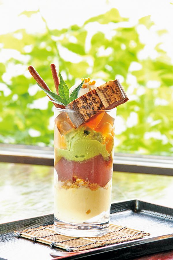 地元・一乗寺の名物といえば「でっち羊かん」。米粉と小豆の練り物を竹の皮に包んで蒸しあげた和菓子です。もちっとした食感とほのかな甘さはお茶請けにピッタリ。常温保存できるので、おみやげにしてもよろこばれます。そのほか、「絹ごし緑茶てぃらみす」や「三色お豆のタルト」などの洋菓子も要チェック。和菓子の要素を取り入れた繊細な味は、テレビ番組で「朝のおめざ」に選ばれるほど人気なので、ぜひ購入を。持ち帰るのが難しい場合は、お店併設のカフェスペースで味わうこともできます。