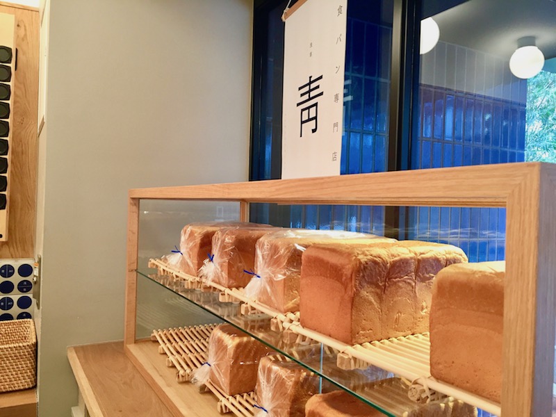 看板商品であるプレーンタイプの「靑の食パン」(二斤分サイズ800円/税抜)は、オーストラリア産の最高級小麦を使用した、極上のふわっふわ感が楽しめるパン。
