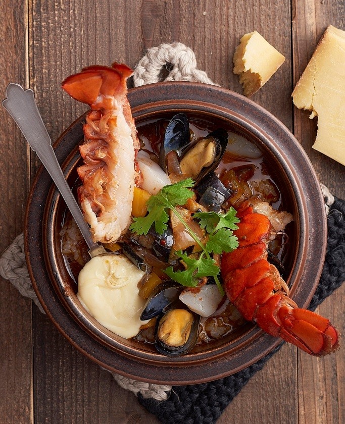 さらに、11時30分~14時30分LOのランチタイム・テラス席限定で、「熱々!オマール海老のスパイシーブイヤベースリゾット」2640円も登場。世界各国のスパイスを使用したキハチ特製スープに、オマール海老やムール貝、帆立貝などの魚介とトマトベースのラタトゥイユと石焼きリゾットに。別途330円で、とろーりラクレットチーズをかけて、まろやかなチーズの味わいを楽しんで。