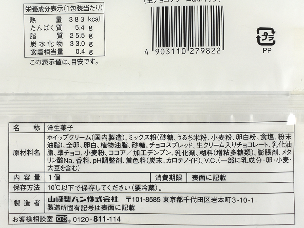 ちなみに、1包装当たりのカロリーは383Kcalほど。チョコレートとクリームがたっぷりサンドされているので、冷やしてから食べるのもおすすめですよ。