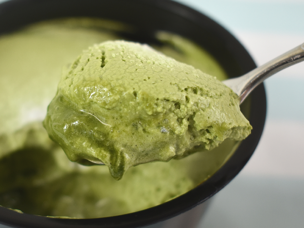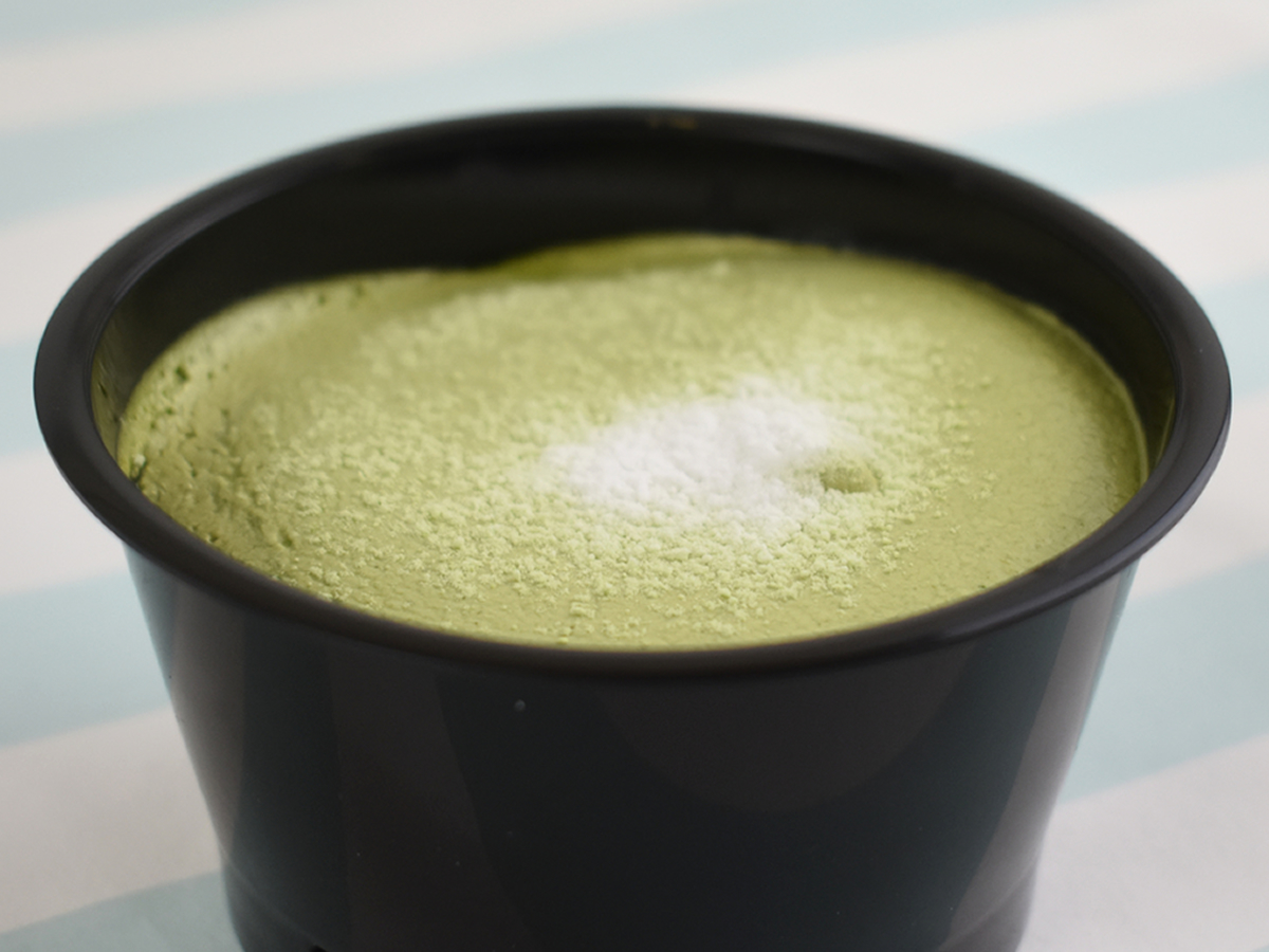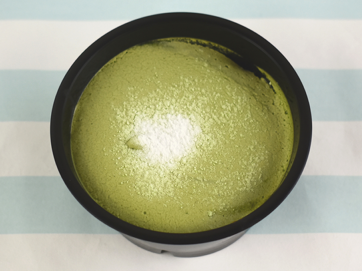 黒い容器に入った「旨み抹茶のメルティショコラ」を開けてみると、抹茶の独特な香りが鼻を抜けていきました。パッケージの中にたっぷり入った“抹茶クリーム”の上には、雪のような粉糖がトッピングされています。全体的に黄緑色のカラーリングをしていて、とっても華やかな見た目。思いっきり抹茶の香りを吸いこめば、間違いなく癒されます。なお、1包装当たりのカロリーは261Kcal。「抹茶でリフレッシュしたい」と感じたときに丁度よさそうですね。
