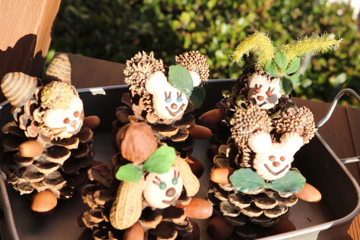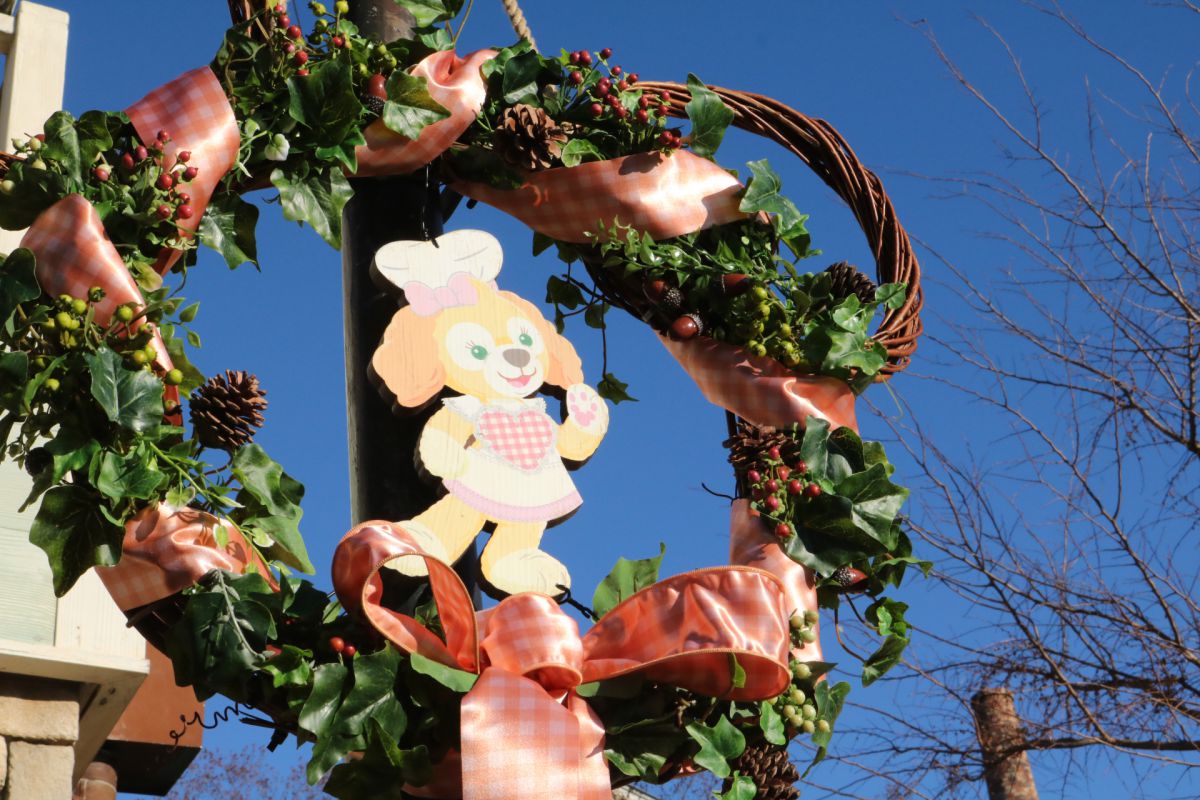 さらに店舗の外には花などが飾られたカウンターがあって、木の実や松ぼっくりで作ったたダッフィー&フレンズも。例年おなじみなデコレーションですが、今年はクッキー・アンのものもちゃんとありますよ。
