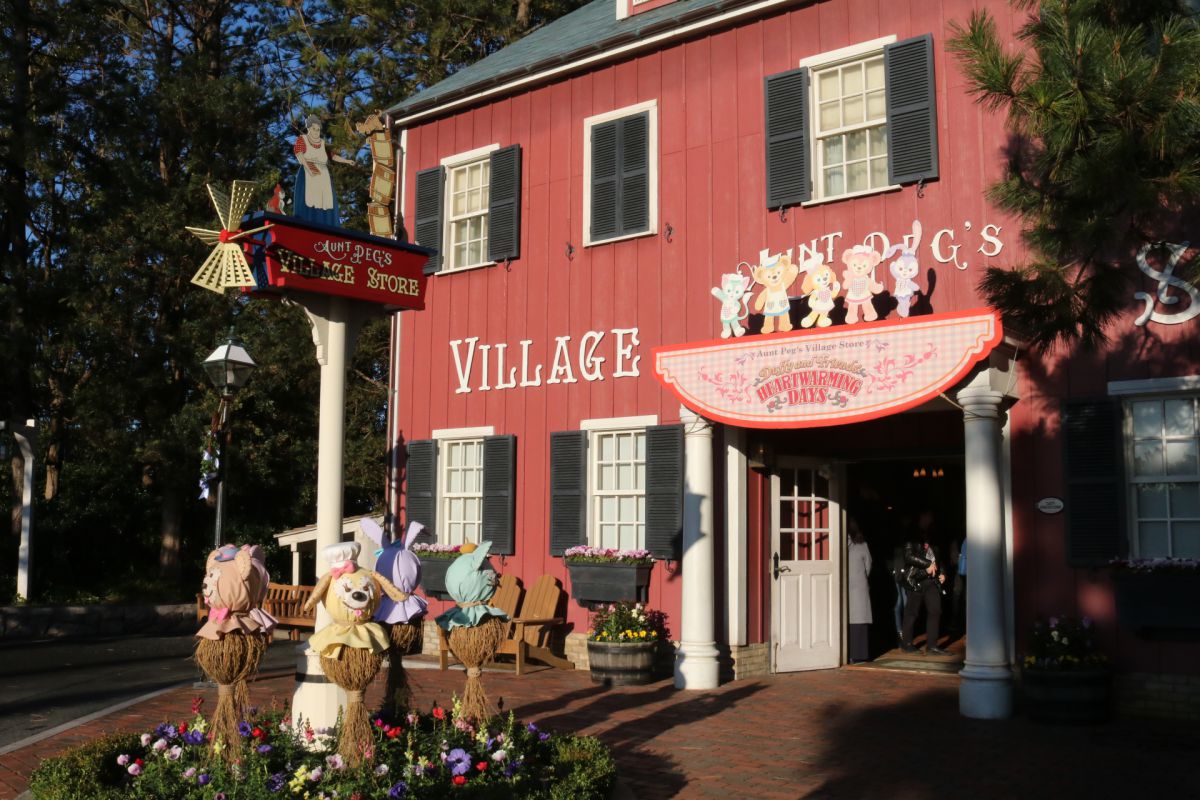 アーント・ペグズ・ヴィレッジストア前には、ダッフィー&フレンズが力を合わせて作った大きなワッフルタワーをお披露目するシーンを再現したフォトロケーションが。嬉しそうなダッフィーたちの笑顔に癒されます。
