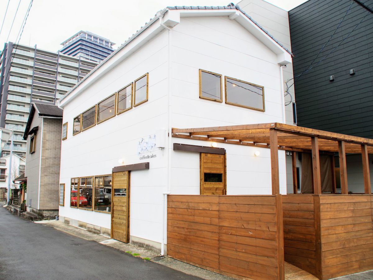 「licht coffee&cakes」は、JR熊本駅からほど近い住宅街の一角にあります。白川口を出て右手へ進み、交番のある交差点を渡ると見えてくる白い一軒家が目印です。