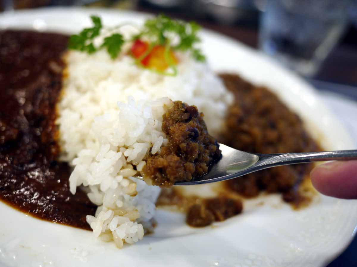ハーブカレーは薬膳カレーのようで、はじめて食べるとちょっとクセのある味に食べる手が止まってしまうかもしれません。しかし、欧風カレーと混ぜながら食べると複雑な旨味がうまれ、今度はスプーンが止まらなくなります!