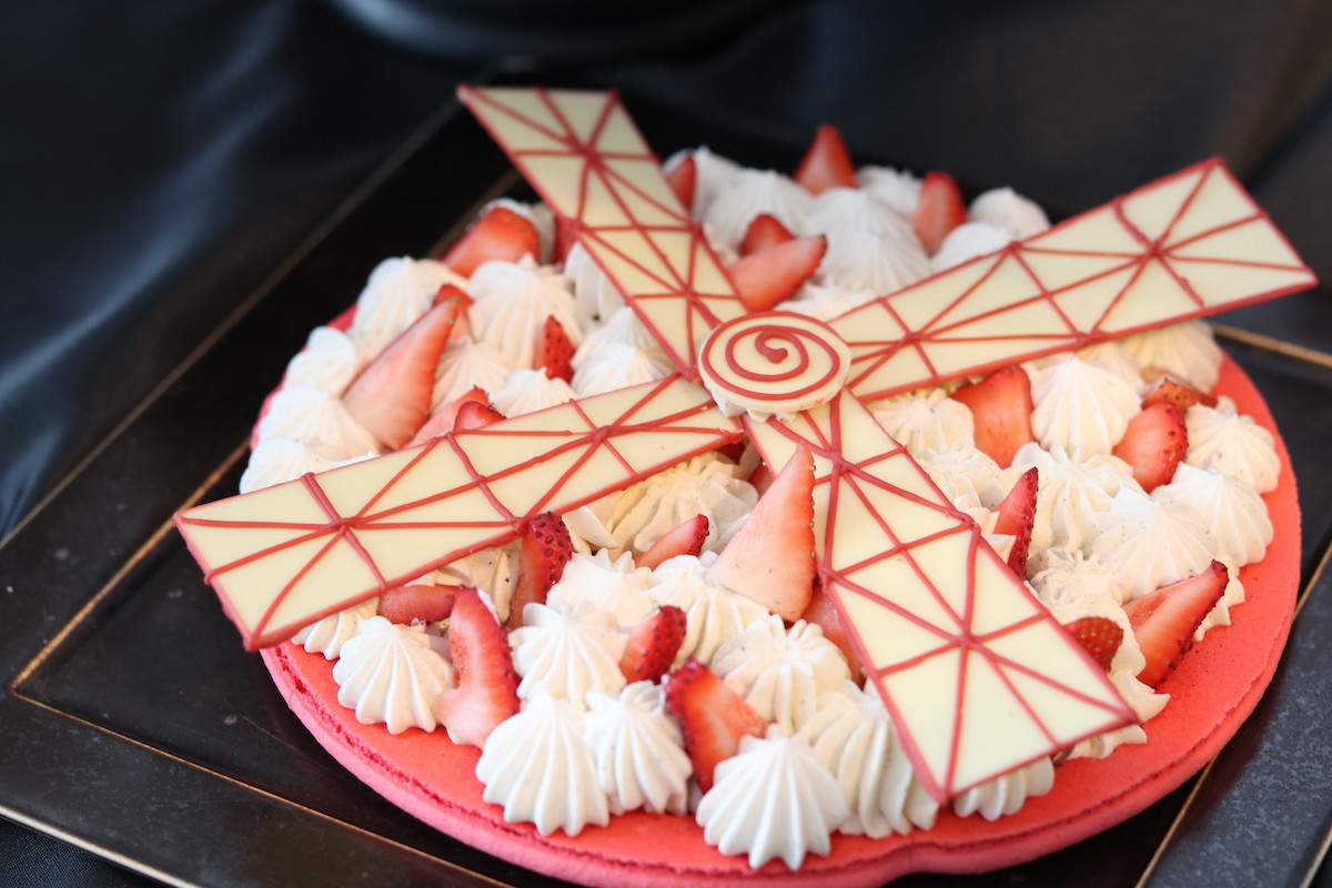 マカロンで作り上げた生地に、クリームとストロベリーをたっぷりトッピング。サクサク楽しいマカロン生地と、フレッシュなストロベリーの味わいがとっても好相性でした。