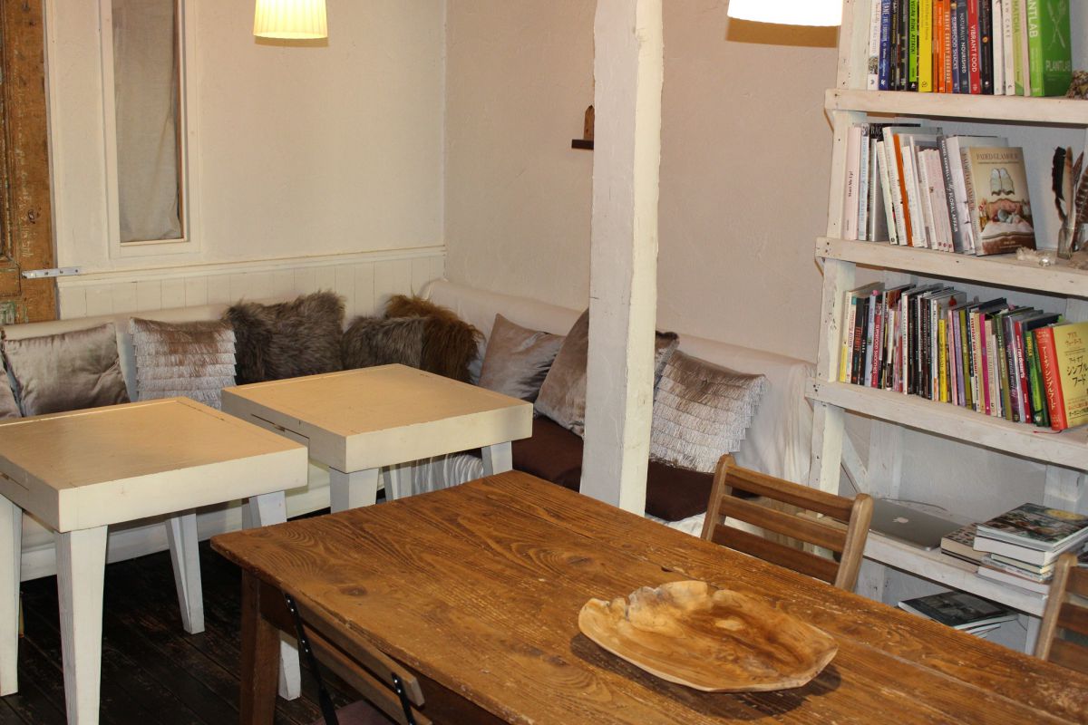 奥に進むと、白壁とナチュラル&アンティークなインテリアで飾られたとっても素敵なカフェ。