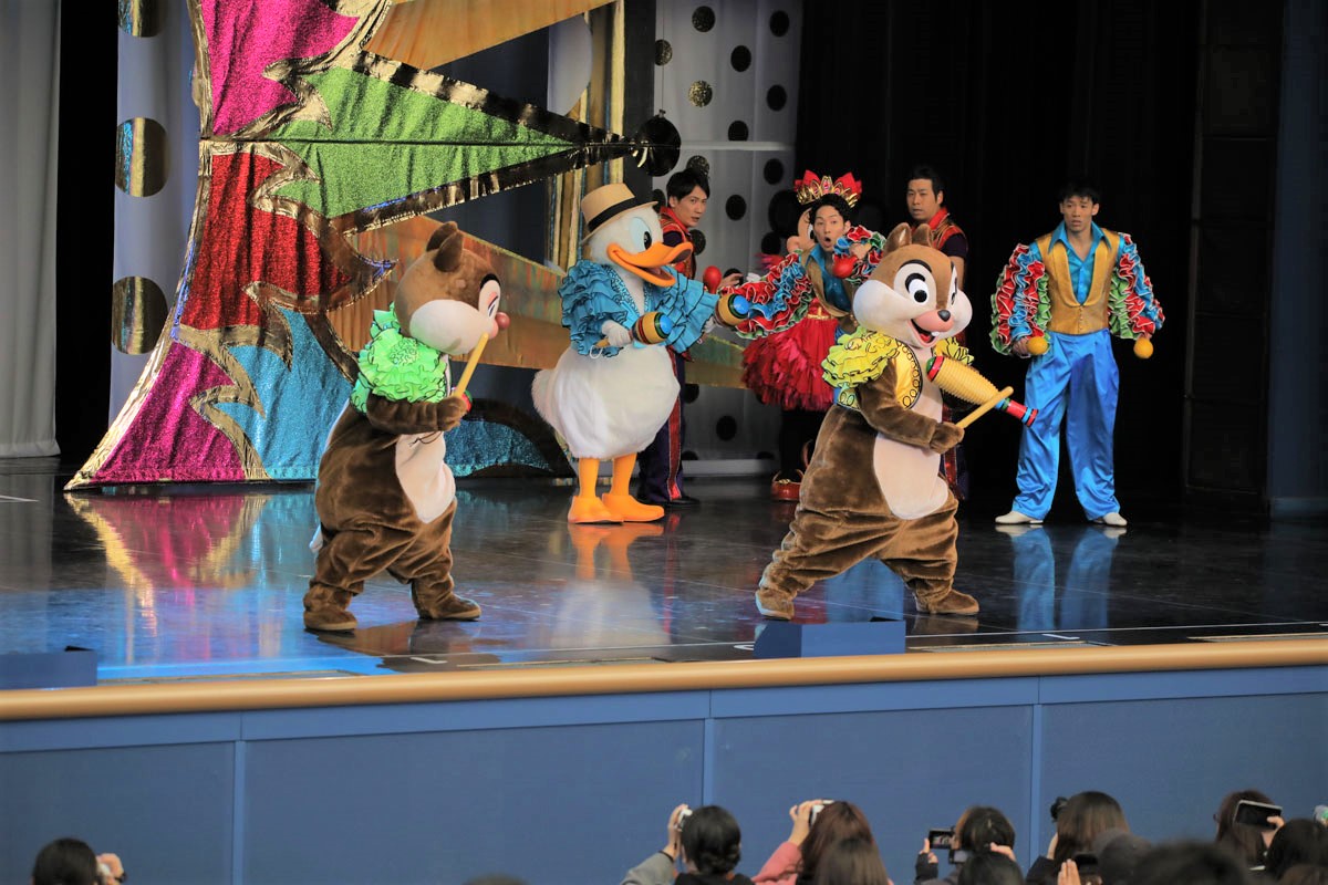まず始まったのは「ミニー・オー!・ミニー」と「フェスタ・トロピカール」が中心になったラテンスタイル。チップ&デールとドナルドがもめるお決まりのパターンになんだかほっこりしてしまいます。
