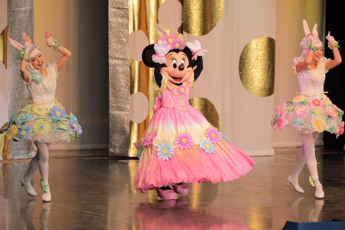 2020年4月15日(水)からオープンするキャラクターグリーティング施設「ミニーのスタイルスタジオ」の記念スペシャルプログラム「イッツ・ベリー・ミニー」。ミニーが主役のエンターテインメントとあって、赤いコスチュームのダンサーとミニーが華やかに登場してプログラムが始まります。