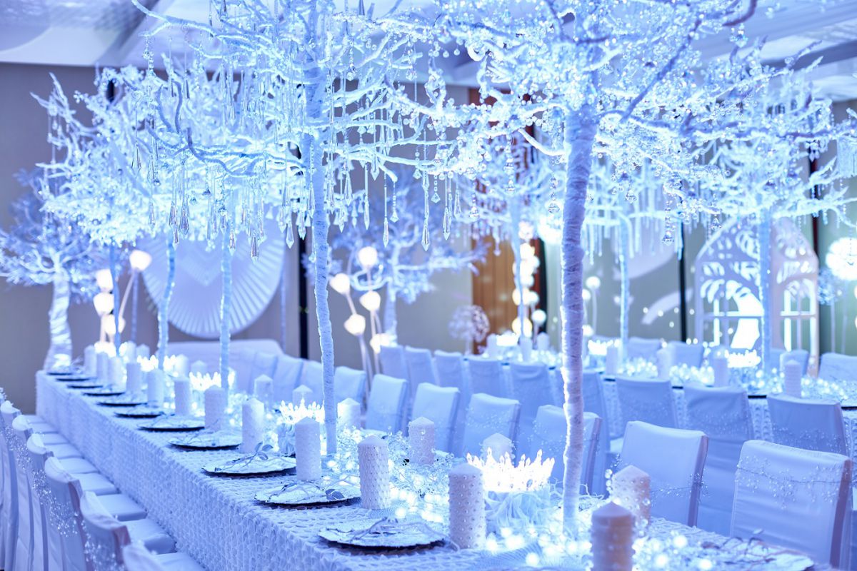 まずはメインバンケットでの「純白の森ナイトツアー」をご紹介。見渡す限り、白亜の世界が広がるアート空間は、自然界の植物は使わず、アート作品のみで自然の森を表現。そこに照明や映像による演出が組み合わさり、美しく輝く“純白の森”が出現します。館内には「ボタニカル」をモチーフにした複数のアートオブジェも点在。カメラ片手に、アートの森をフォトラウンド!すべての空間が美しくて、どこを切り取っても絵になります。