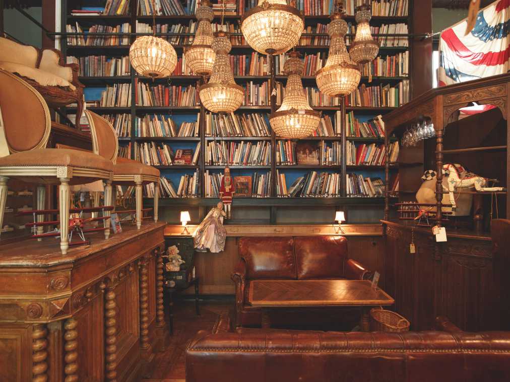 店内には、高い天井に届くほどの大きな本棚に、歴史を感じる家具やシャンデリアなどがあり、まるで古い洋館に迷い込んだよう。