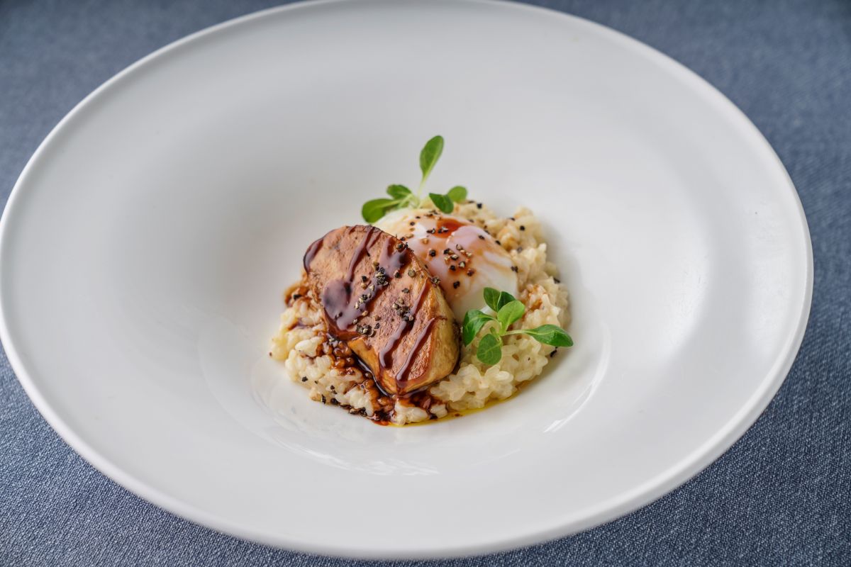 女性から特に人気が高い「フォアグラソテー&トリュフのリゾット 温玉を絡めて」(1800円)。トリュフの上品な芳香が、クリームベースのリゾットからふわりと漂います。