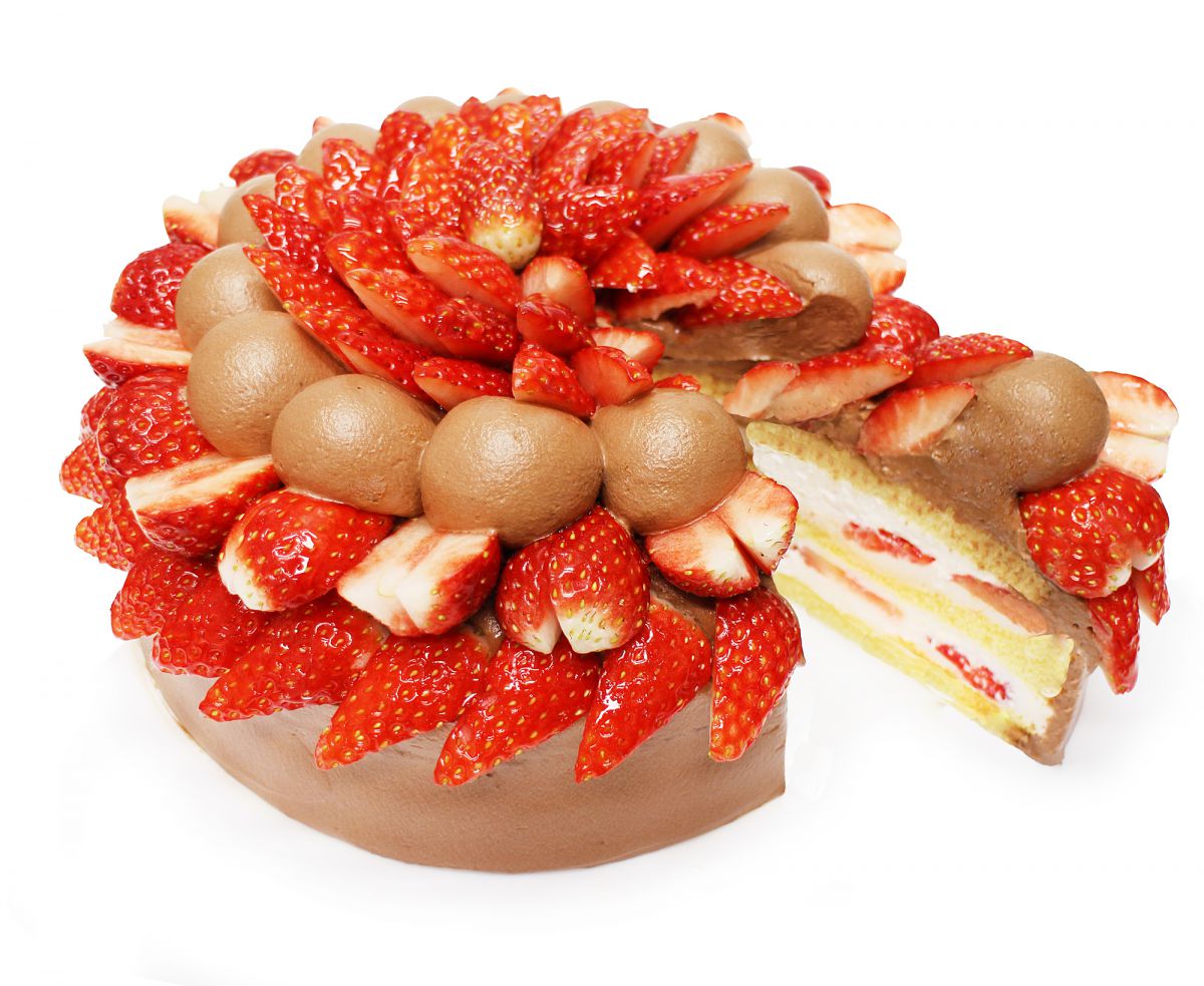 こちらの「いちごとダークチョコクリームのショートケーキ」は、パティシエ選りすぐりのいちごを、ダークチョコレートクリームと、フワフワのスポンジの上にふんだんに飾ったケーキ。