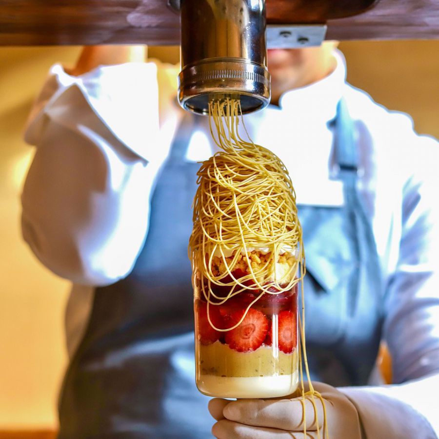 今回は「丹波くり・和栗専門 紗織(たんばくり・わぐりせんもん さをり)」をご紹介します。国産和栗を使用して作るこちらのモンブラン、その細さなんとわずか1mm。「紗織」オリジナルの絞り機を使って作られる錦糸モンブランは、繊細で美しいまるで糸のようでありながら、その中に詰まった栗本来が持つ甘みの強さは感動の一言。そんな錦糸モンブランが生まれるその瞬間は、写真はもちろん、動画でも収めたくなること必至の美しさです。