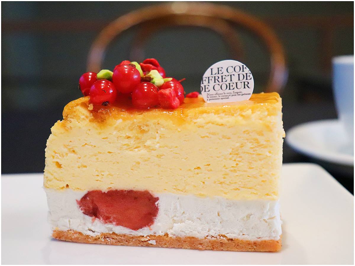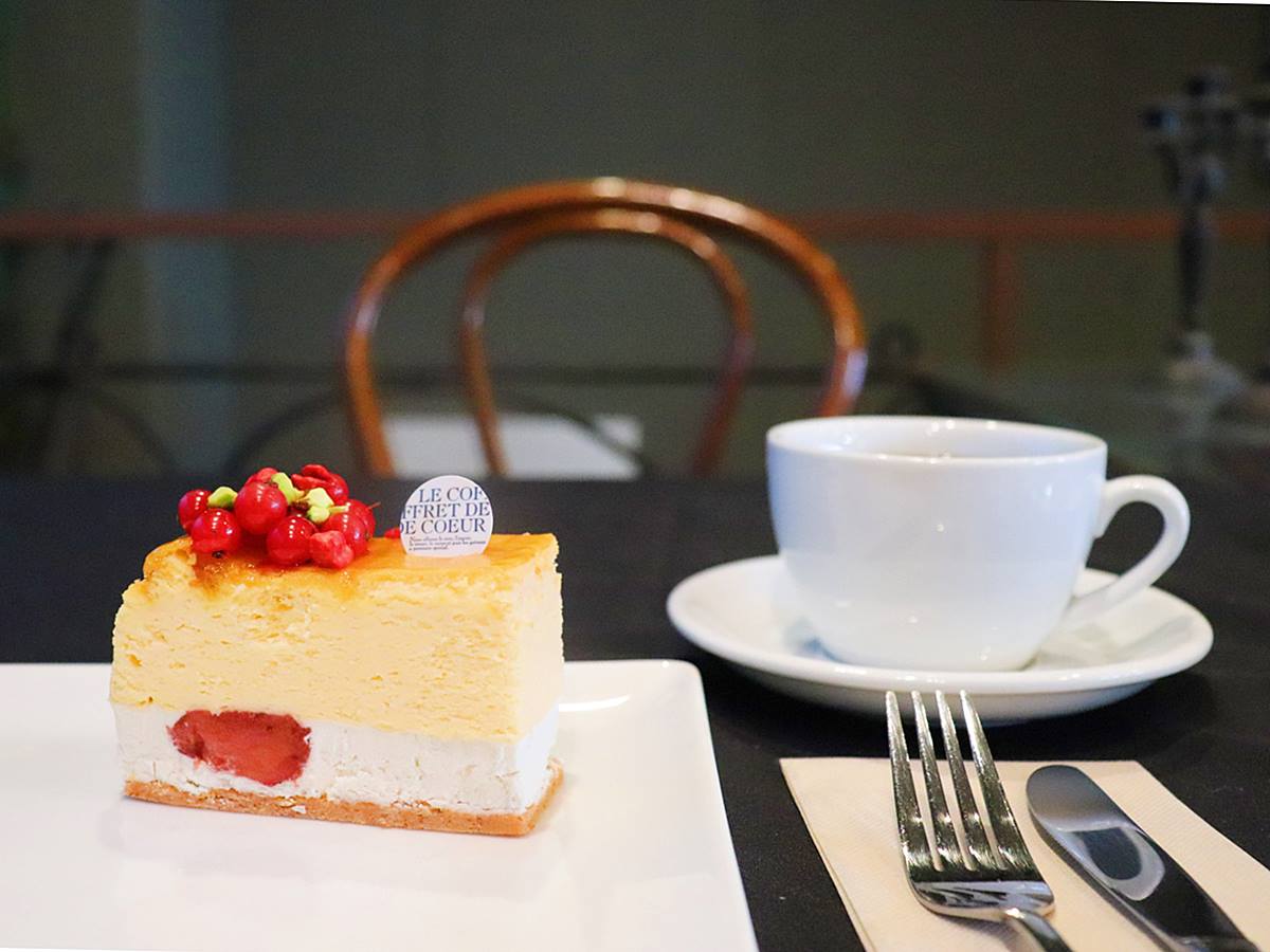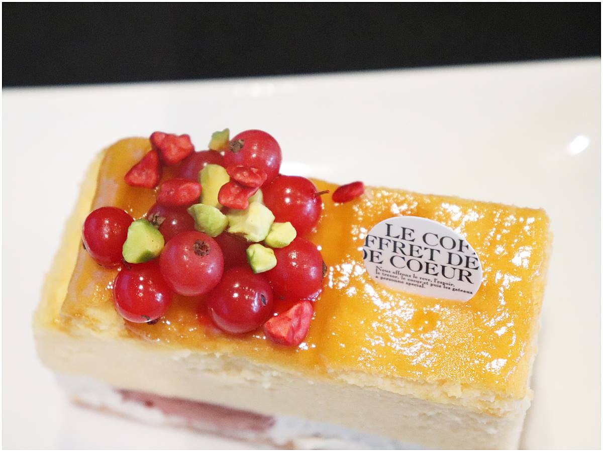 濃厚なチーズケーキにフレッシュな赤すぐりといちごの甘酸っぱさとの相性がぴったり。