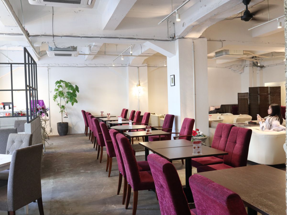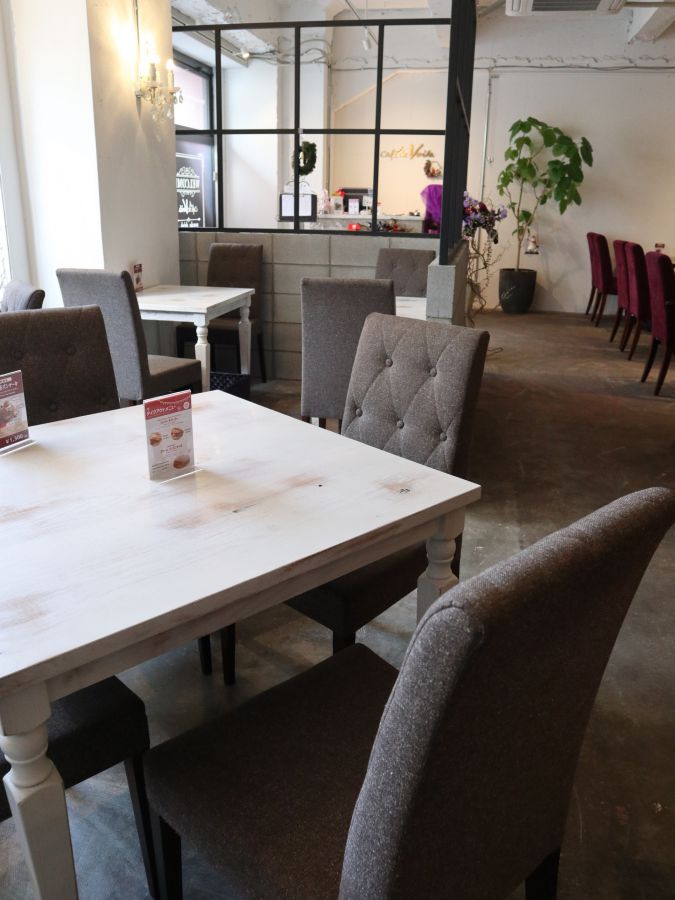 「Cafe de Voila」の目印は、店先のピンクの壁。宝塚歌劇の観劇前後に来られるお客様も多いため、店内では全国各地から集ったファンの方が話に花を咲かせることも。宝塚歌劇団OGによるショーやピアノリサイタルなどのイベントが行われる日もあるそうですよ。