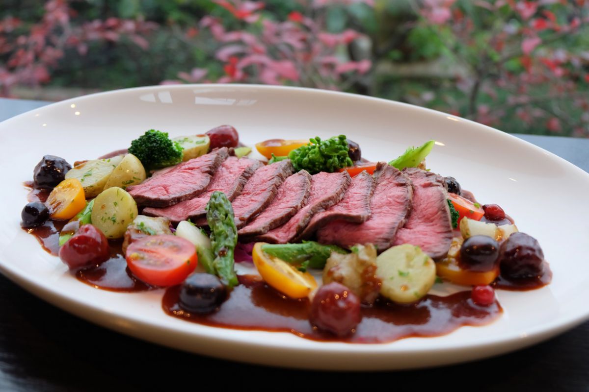 「桜moon lunch」(1800円)のメイン料理としておすすめなのが“ローストビーフ”(+400円)。ジューシーな味わいのローストビーフは、食べ応えも抜群!シェフ自慢のソースを絡めてお楽しみください。※メイン料理はその日によって異なります。