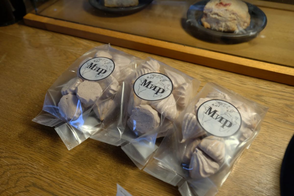 オリジナルのお菓子「メレンゲクッキー」(300円+税)も好評。自宅用や、ちょっとした手土産としても利用することができます。他にも自家焙煎スペシャルティコーヒー豆もあり、オリジナル商品も充実しています。