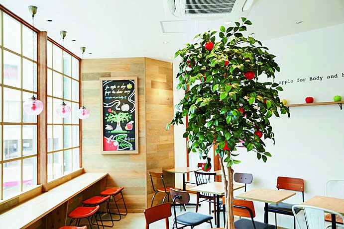 内装もリンゴ感満載でかわいいこちらは、青森りんごに特化した専門店。縁あって出会ったりんご農家さんから届くりんごをはじめ、りんごを使ったパイやタルト、ジュース、ジャムなど、バリエーション豊富なりんごアイテムが揃うお店です。