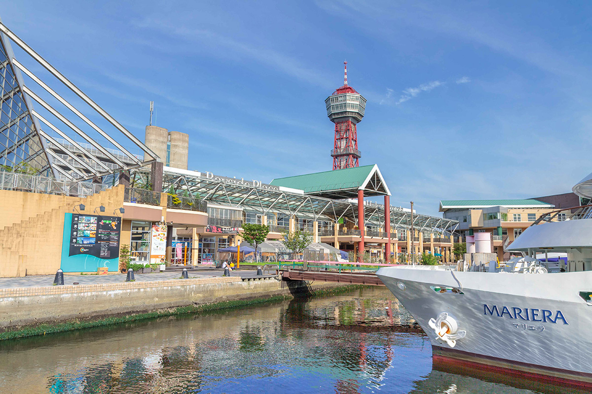 やって来たのは「ベイサイドプレイス博多」。福岡の中心部・天神からバスで約10分という好アクセスながら、降りたつと風景は一転。海と空が気持ちいいベイエリアにさっそく気分が高まってきました♪