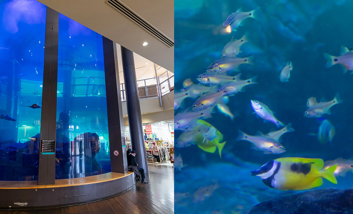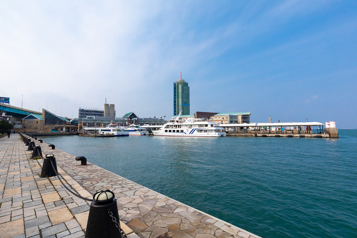 チェックインは博多ふ頭第1ターミナル1階「マリエラカウンター6番」へ。目印は高さ8mの巨大なタワー型水槽です。ベイサイドプレイスのランドマーク的な存在で待ち合わせにも便利。熱帯魚からウミガメまで約3000匹の魚たちに癒されながら、出港までの時間をココで過ごすのもおすすめです。