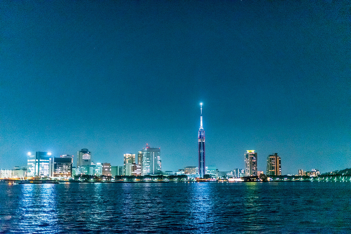 美しい夕景やライトアップされた福岡タワーなど、夜景を楽しめるのが「ディナークルーズ」です。土・日曜、祝日はサンセットに合わせて18時出港(※10~2月は17時出港)。平日は仕事帰りでも間に合う19時からの出港です。星空と夜景が広がる幻想的な雰囲気は女子会や記念日ディナー、もちろんカップルのデートにも大人気。