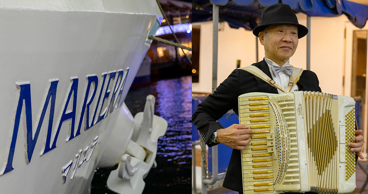ディナークルーズならではのお楽しみがもう一つ。実はピアノの生演奏がディナータイムを盛り上げてくれるんです。誕生日のゲストがいる夜にはサプライズのバースデー演奏も!さらに、誕生日と結婚記念日の乗船にはマリエラからデザートプレート(またはワイン)がプレゼントされます。予約の際にひと言添えるのをお忘れなく。