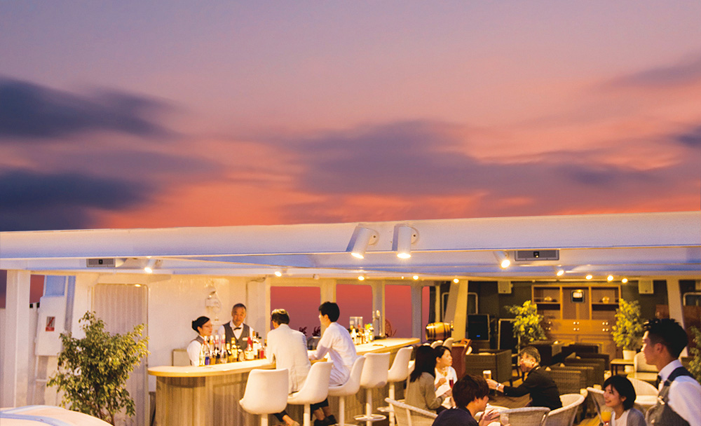 抜群の開放感!3階ルーフラウンジで味わう「ハワイアンビアクルーズ」