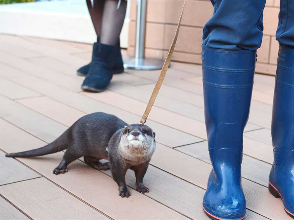 ここの屋外エリア「マリンガーデン」で、毎日14時45分から行われているのが「カワウソ・グリーティングタイム」。飼育スタッフからその生態や暮らしぶりを聞きながら、リードにつながれてお散歩するカワウソに癒されること間違いなし!
