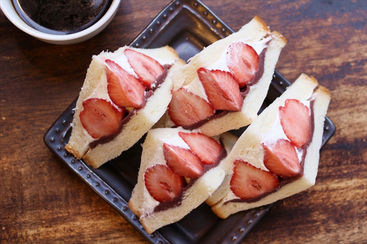 一般的なフルーツサンドには生クリームやフルーツだけが挟まれていますが、「SUKEMASA COFFEE」では特別にあんこもサンド。