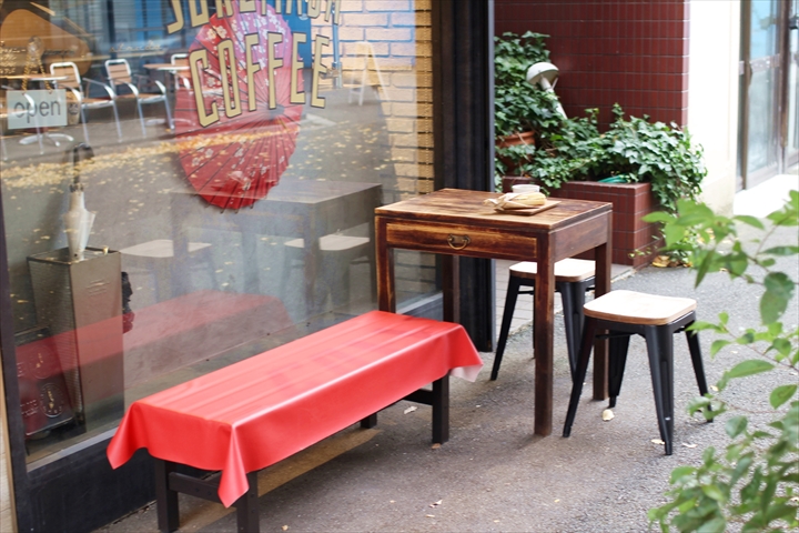 つくばエクスプレス浅草駅から徒歩5分、浅草寺や花やしきのすぐそばの路地にあるのは、真紅の和傘が目印のコーヒーショップ「SUKEMASA COFFEE(スケマサコーヒー)」。