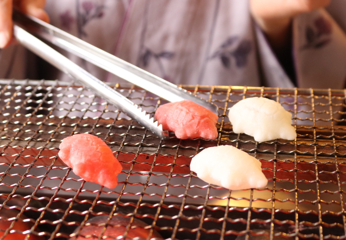 HPや電話で予約をすれば「宗禅」の伝統菓子「紅白亀甲餅」を焼く体験も可能(あられ焼き体験、皇室献上品 紅白亀甲餅焼き体験、ほうじ茶焙じ体験+スイーツ付き 2484円)。このようにお餅をキレイに膨らませられるのは、「宗禅」だけが持つ技術。平べったいお餅から亀のようにぷっくりと膨らんでいく様子はなんとも楽しいものです。体験後にはサクサクのお餅やあられを、お醤油や海苔と一緒においしくいただけます。