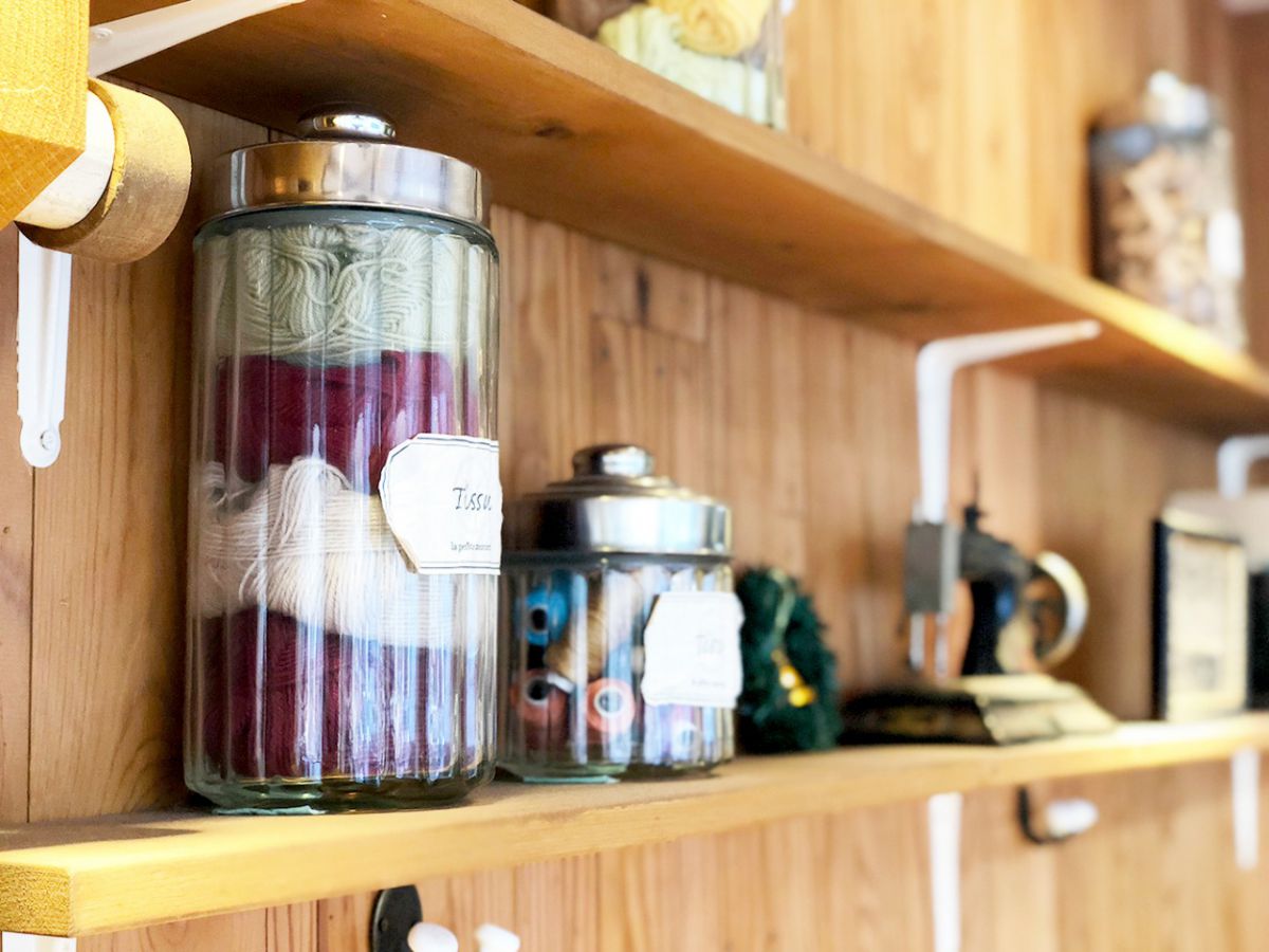 奥へ進むと、小さなミシンや毛糸、生地など“手芸店”というコンセプトに沿った小物が飾られていて、細部までこだわりを感じる木目調の店内が広がっています。そんな『la petite mercerie ルミネエスト新宿店』のアフタヌーンティーがこちら!