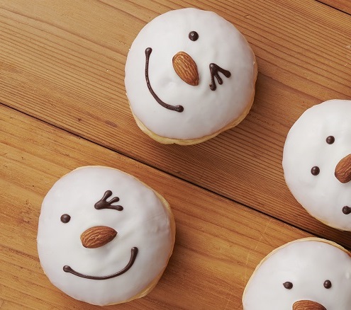 「タリーズラズベリースノーマンドーナツ」 300 円(税抜)は、ホワイトチョココーティングされた生地の中に、ラズベリージャムの甘酸っぱい味わいが広がるドーナツ。ウインクをした雪だるまに出会えるかもしれませんよ。