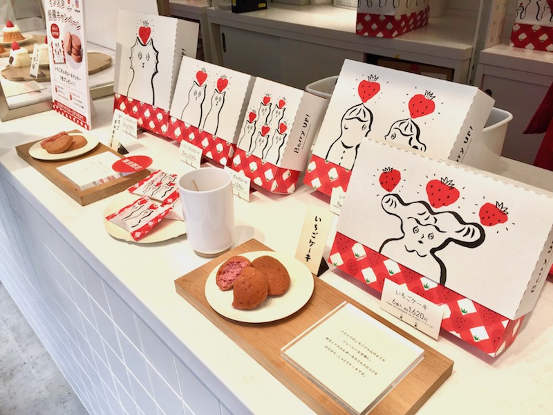 表参道の「Berry Up!(ベリーアップ)」は、いちごスイーツの専門店。注目は、この時期食べたい“いちご大福”。ころんとした大福の上にいちごが乗ったフォルムがとてもかわいらしく、食べるのがもったいなくなるほど。イラストレーター・塩川いづみさんの描くイラストを全面的に採用した店舗デザインやパッケージもゆるカワで手土産にもぴったりです。