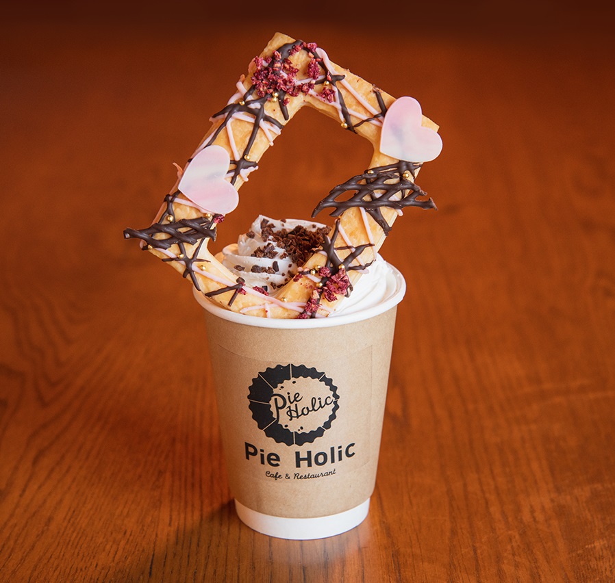 パイがフォトフレームに⁈ホットチョコで写真撮影もばっちり