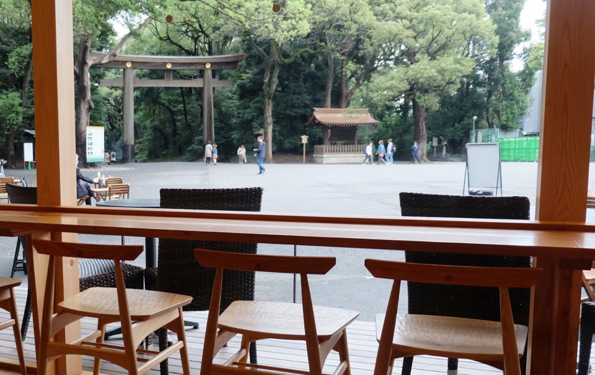 JR原宿駅もしくは東京メトロ明治神宮前〈原宿〉駅から2~3分歩くと、緑いっぱいの光景が。そんな緑いっぱいの「明治神宮」の敷地内、南門の手前にあるCAFÉ「杜のテラス」です。
