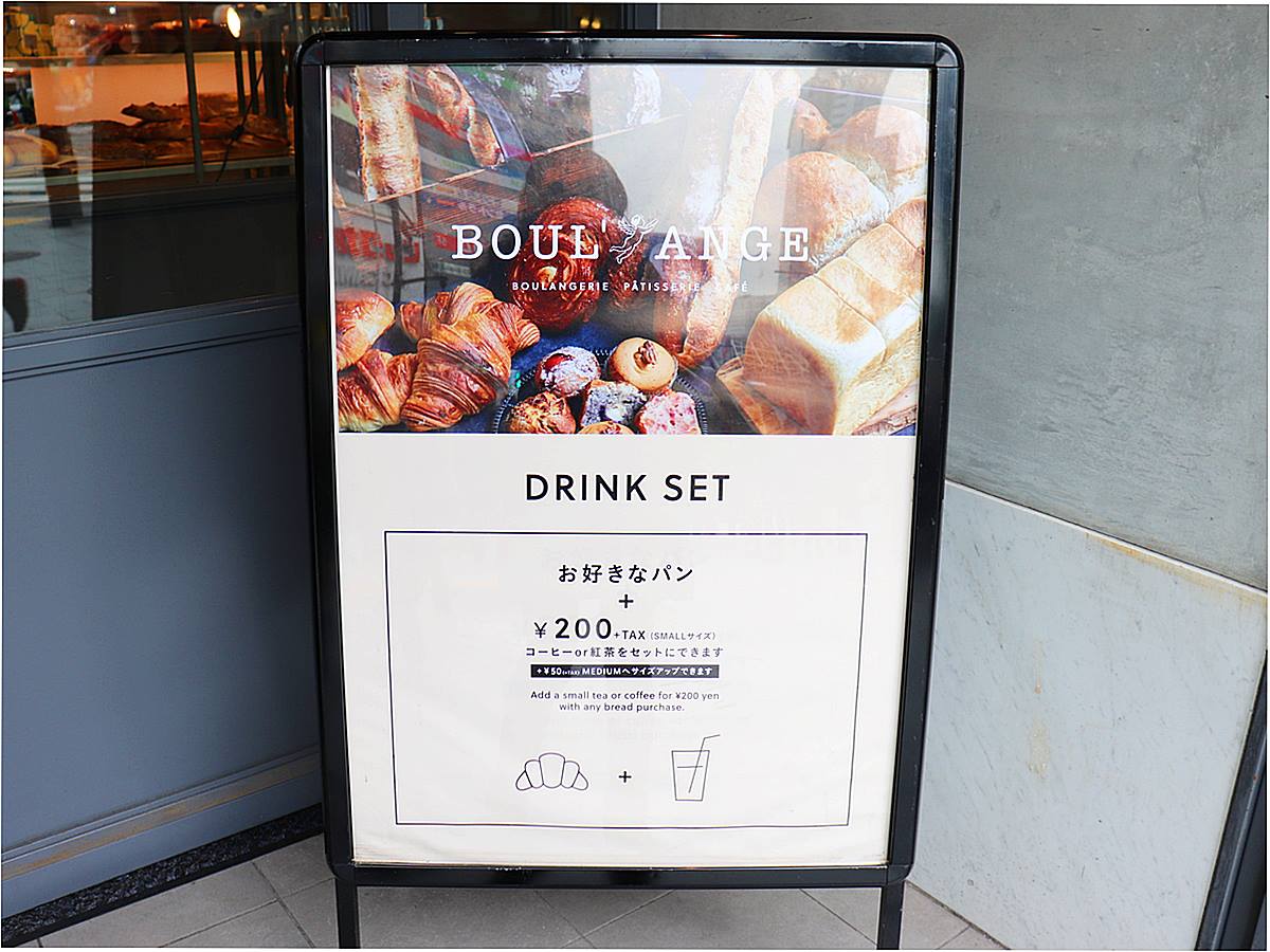 パンはテイクアウトだけでなく、イートインも可能。お好きなパンにプラス200円(税別)でコーヒーや紅茶が付くドリンクセットもあります。