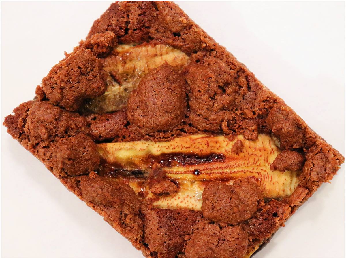 ココアタルト生地に、フレッシュバナナ、ショコラクランブルを混ぜて焼き上げた一品。濃厚なバナナの甘い香りとサクサクのクランブルの香ばしさは相性抜群。