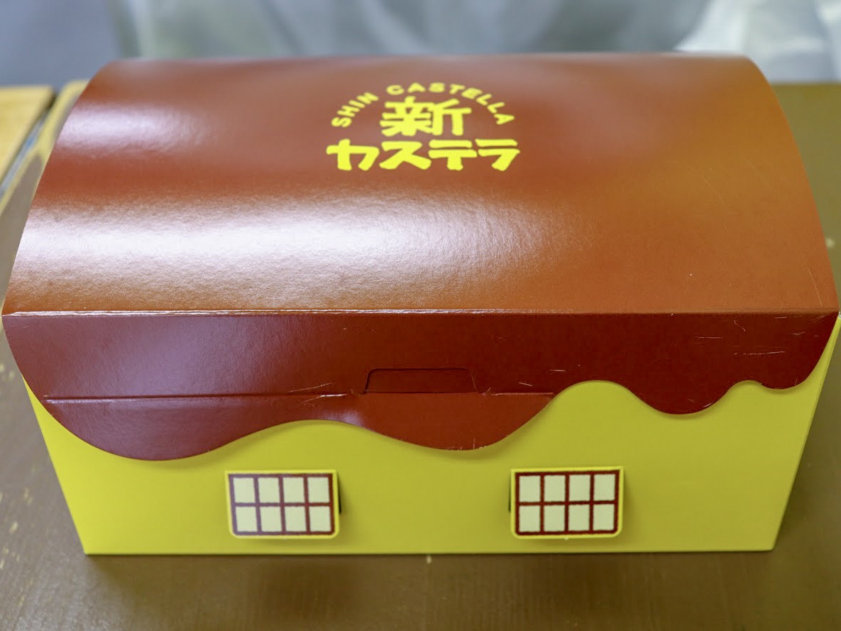 店舗の建物をミニチュアにしたかのようなデザインのオリジナル箱は、とってもキュート!側面には新カステラのおすすめの食べ方も記載されていますよ。