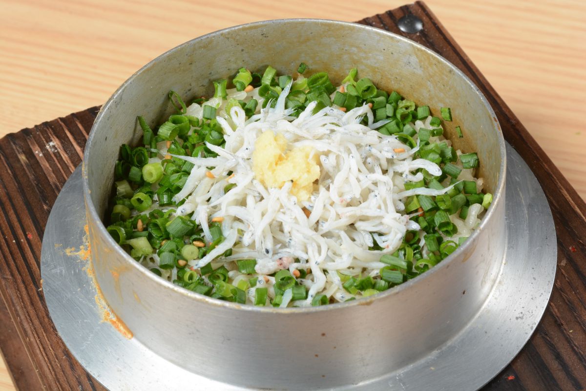 湯浅産の釜揚げシラスをるるぶキッチンASAKUSAの定番、釜めしメニュー1380円に。ふっくらとした食感の釜揚げシラスに、湯浅産醤油・角長の「濁り醤(びしお)」をかけていただく、シンプルながらも贅沢な一品です。