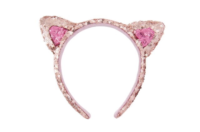 総スパンコールのキラキラカチューシャはパークでも注目の的!小さめの耳がチャームポイント。カチューシャ1700円。