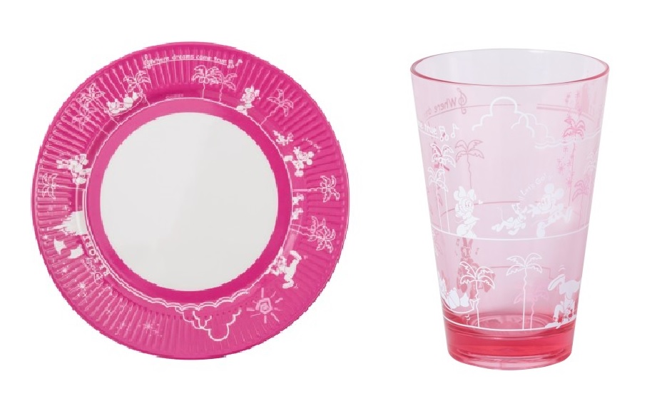 タンブラーやプレート各1100円は、パーク内の飲食施設で実際に使われているお皿やカップのデザインを、ピンクにアレンジしたアイテム。プレートは紙皿ではなく、メラミン樹脂製。割れにくく繰り返し使えますよ!
