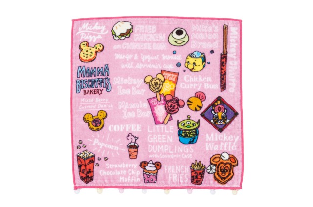 パークのスナック系フードが勢ぞろい!見ているだけで味を思い出しちゃう、ミニタオル680円。25cm×25cmのサイズなので使い勝手もいいですよ。