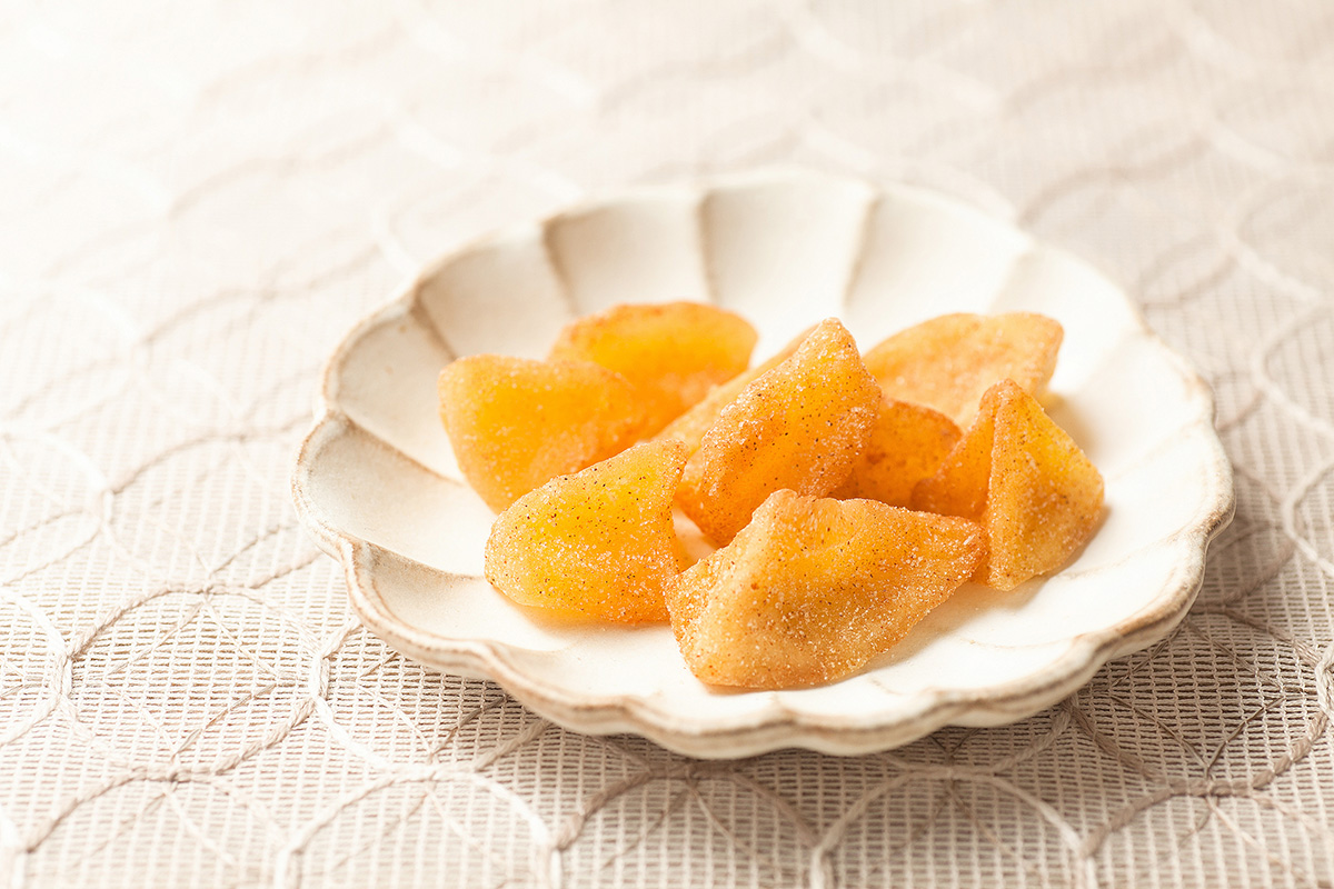 特筆すべきは、このドライりんごの食感。しゃくっとしっとり。素材にも製法にもこだわってつくられた自然の恵みは格別のおいしさです。