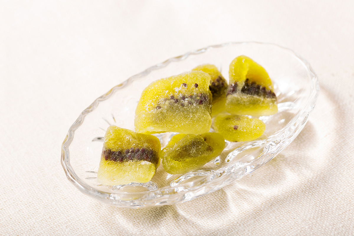 お味は、生のキウイよりも酸味がそぎ落とされて、食べやすいのも特徴。ドライフルーツにすることで、ミネラルと食物繊維もたっぷり。栄養バランスがいいパーフェクトなお菓子をぜひお散歩のお供にどうぞ。