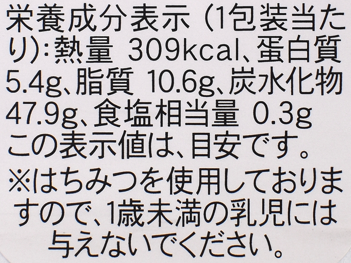 さっそくどら焼き生地を口に含むと、程よい甘さと香ばしい香りが口の中に広がりました。生地に黒みつが混ぜ込まれていて、鼻から抜ける独特な風味がやみつきに。1個当たりのカロリーは約309Kcalです。