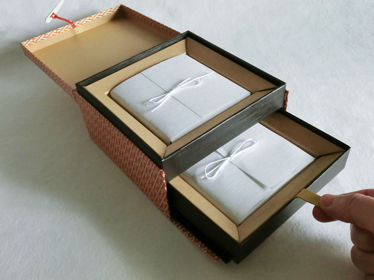箱の手前にかくれた引き出しがあり、そこにも同じ包みを発見!箱を開けただけなのにわくわくが止まらず、“特別な贈りもの感”が伝わってきます。