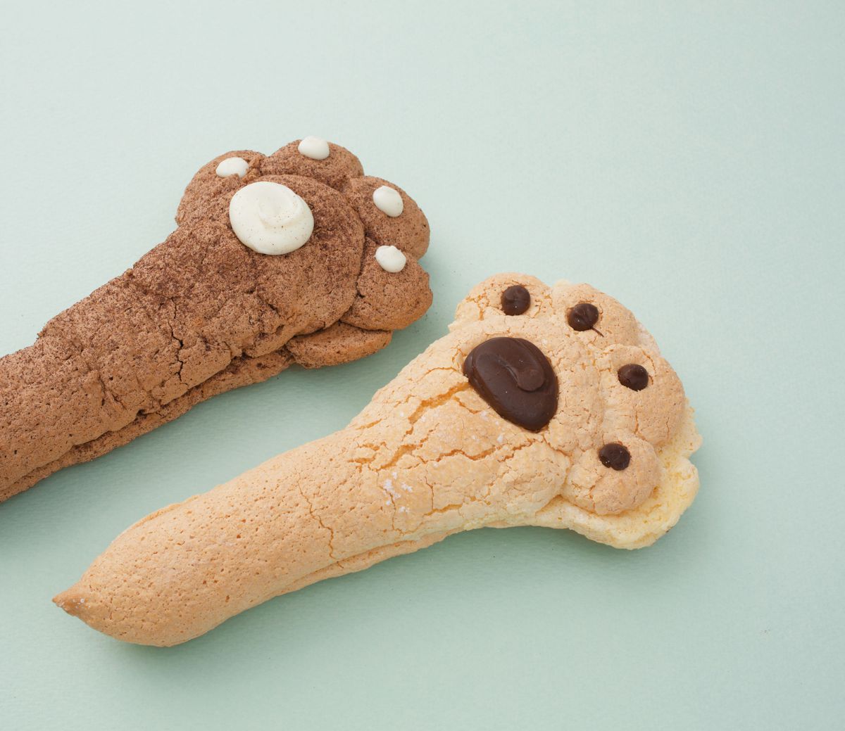 肉球フェチ&ねこ好きに必ず喜ばれる「いろねこのて」。外はサクッ、中はふんわりとしたダクワーズ生地にクリームをサンドしています。プレーン、チョコの2種があります。